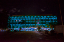 Para integrar a campanha Coração Azul, realizada durante a 11ª Semana Nacional de Mobilização para o Enfrentamento ao Tráfico de Pessoas, da Secretaria da Justiça e Cidadania do Paraná (Seju), a Universidade Federal do Paraná (UFPR) usará as cores da ação na fachada de um de seus prédios em Curitiba. Foto no Prédio Central da Administração, Centro Politécnico (2025).