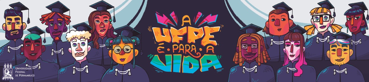 "Faixa horizontal da campanha de volta às aulas 2024 da UFPE, seguindo o mote ""A UFPE é para a vida"". Apresenta 12 personagens diversos, representando a pluralidade de formandos, sintetizando o conceito da campanha, que se desdobrou em diversos materiais gráficos. A peça selecionada é a faixa horizontal da campanha de volta às aulas 2024 da UFPE, que segue o mote ""A UFPE é para a vida"". Essa faixa sintetiza toda a comunicação visual e o conceito central da campanha, que contou com diversas outras peças gráficas, como folders, banners, galhardetes e materiais para redes sociais e sites.