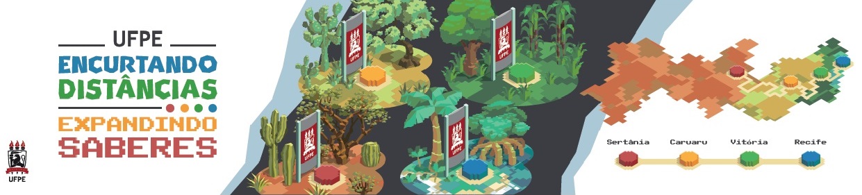 "Faixa horizontal da campanha de volta às aulas 2025 da UFPE, simbolizando a chegada da universidade ao sertão e a expansão para as quatro regiões do estado. Inspirada em mapas de videogame, aproxima-se da jovialidade dos estudantes e sintetiza todo o conceito da campanha. A peça selecionada é a faixa horizontal da campanha de volta às aulas 2025 da UFPE, que simboliza a expansão da universidade para todas as quatro regiões de Pernambuco, com ênfase na inauguração do campus no Sertão. Inspirada em mapas de videogame, a faixa representa a UFPE “desbloqueando fases” e aproximando estudantes de novos territórios do conhecimento, reforçando a ideia de que a universidade encurta distâncias e expande saberes.