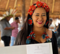 Eunice Pirkodi Caetano Moraes Tapuia foi empossada em maio de 2024 como a primeira docente indígena da UFG. Ela passou a integrar os quadros do Núcleo Takinahakỹ de Formação Superior Indígena (NTFSI).