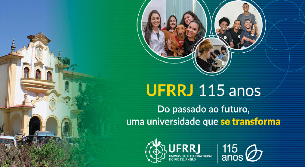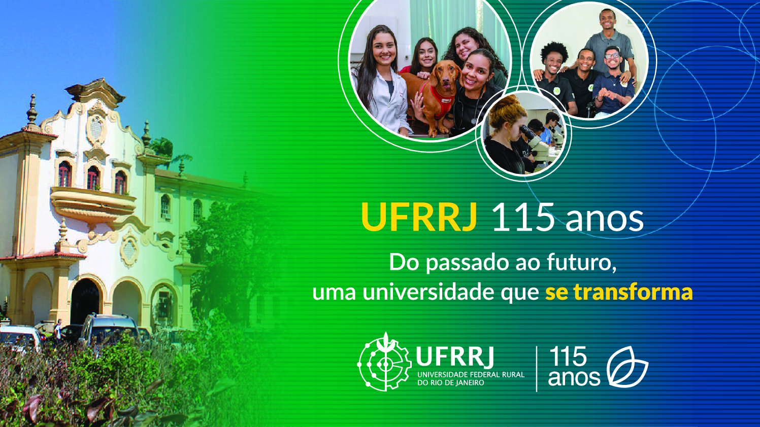 "Em 20 de Outubro de 2025 a Universidade Federal Rural do Rio de Janeiro (UFRRJ) completa 115 anos de origem. A intenção (ou conceito) da identidade visual foi traduzir, de uma forma gráfica, o texto do slogan da campanha: “Do passado ao futuro, uma universidade que se transforma”.